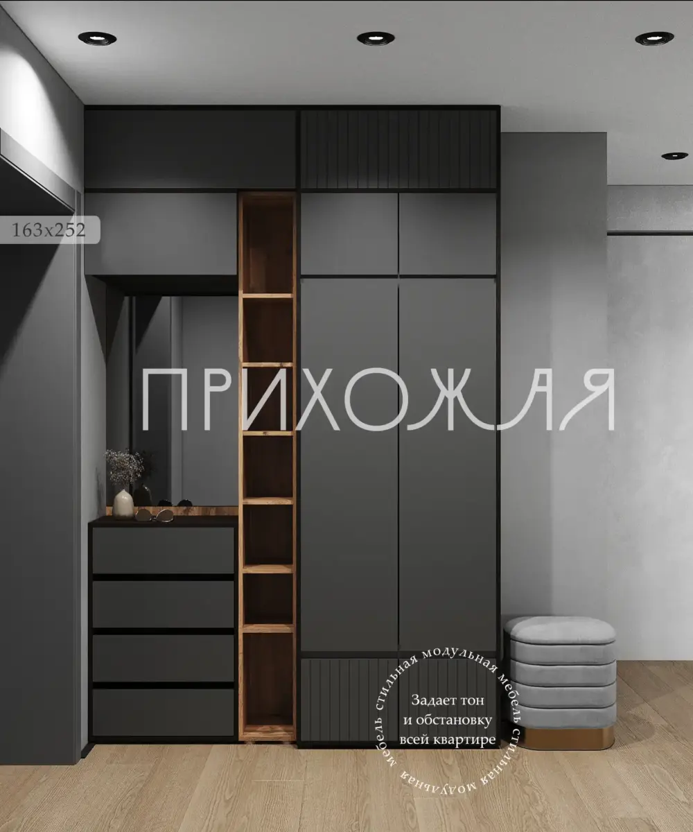 Прихожая «BOSA» К2А с антресолью, МДФ, Графит