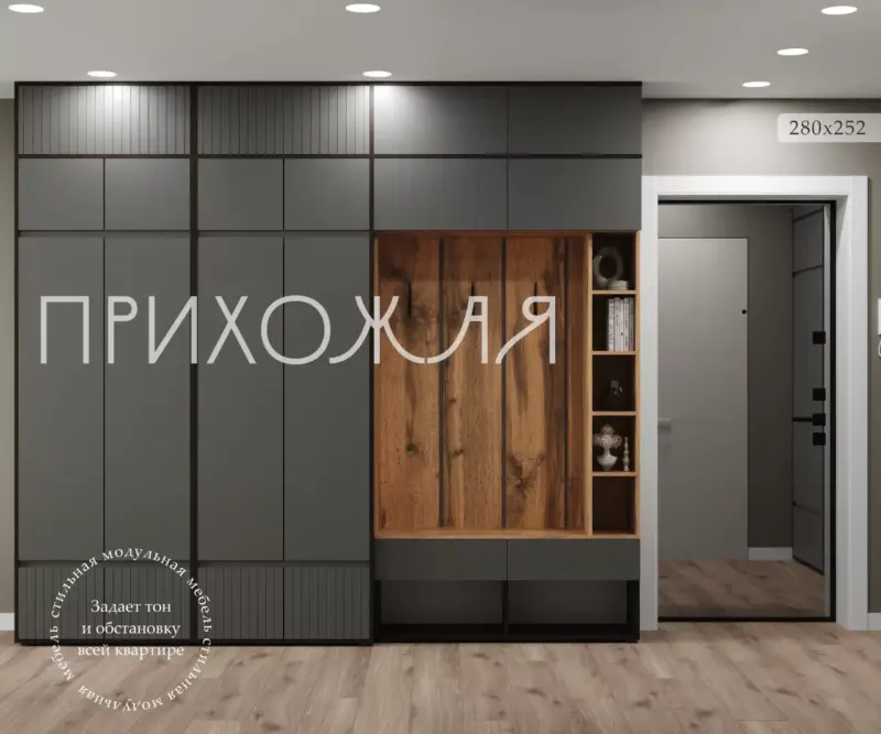 Прихожая «BOSA» К14А с антресолью Венге/Дуб вотан/Графит софт МДФ — это стильный и функциональный комплект мебели для вашей прихожей, произведенный в России. Цвет прихожей выполнен в сочетании венге, дуба и графит софт, что придает ей современный и элегантный вид. Фурнитура выполнена в цвете хром, что добавляет изысканности и утонченности. Материал корпуса прихожей — ЛДСП, а фасад выполнен из МДФ, что обеспечивает прочность и долговечность мебели. Особенностью является наличие штанги для вешалок, что позволяет удобно разместить верхнюю одежду. Выбирая прихожую «BOSA», вы получаете стильный, функциональный и качественный комплект мебели для вашей прихожей, который будет радовать вас своим внешним видом и практичностью на протяжении долгого времени.