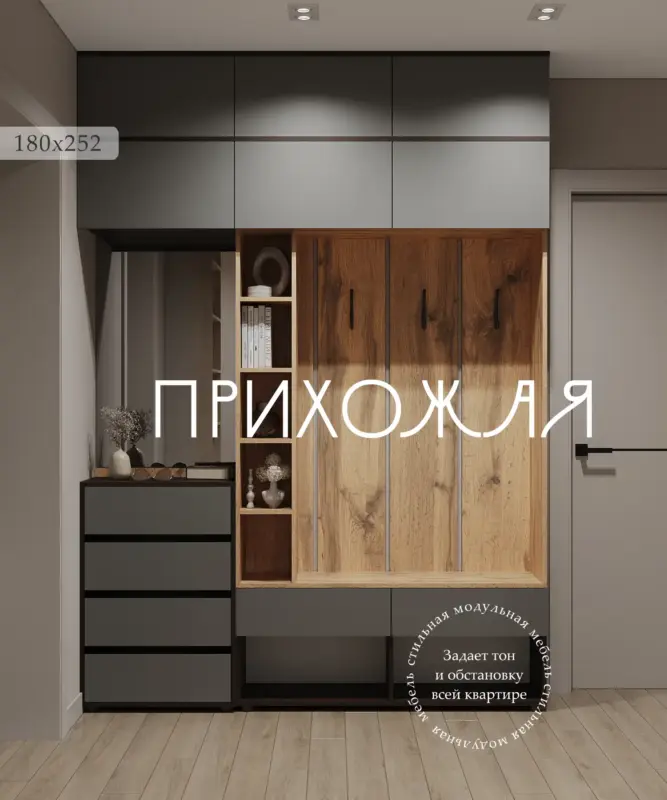 Будьте первым, кто оставил отзыв на “Прихожая «BOSA» К9А с антресолью МДФ, Графит”